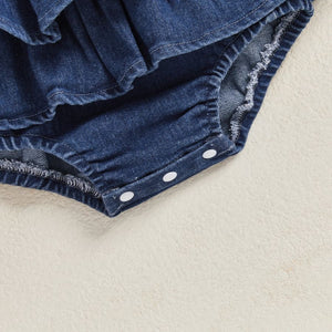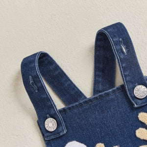 Snowman and Reindeer Christmas friends denim romper with tutu skirt.