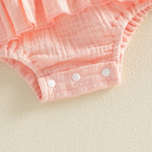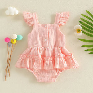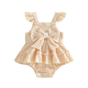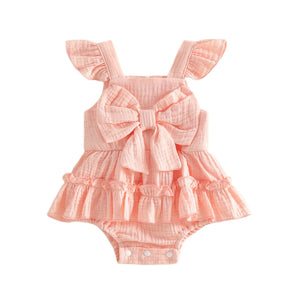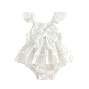 Sweet little flutter romper with big bow.