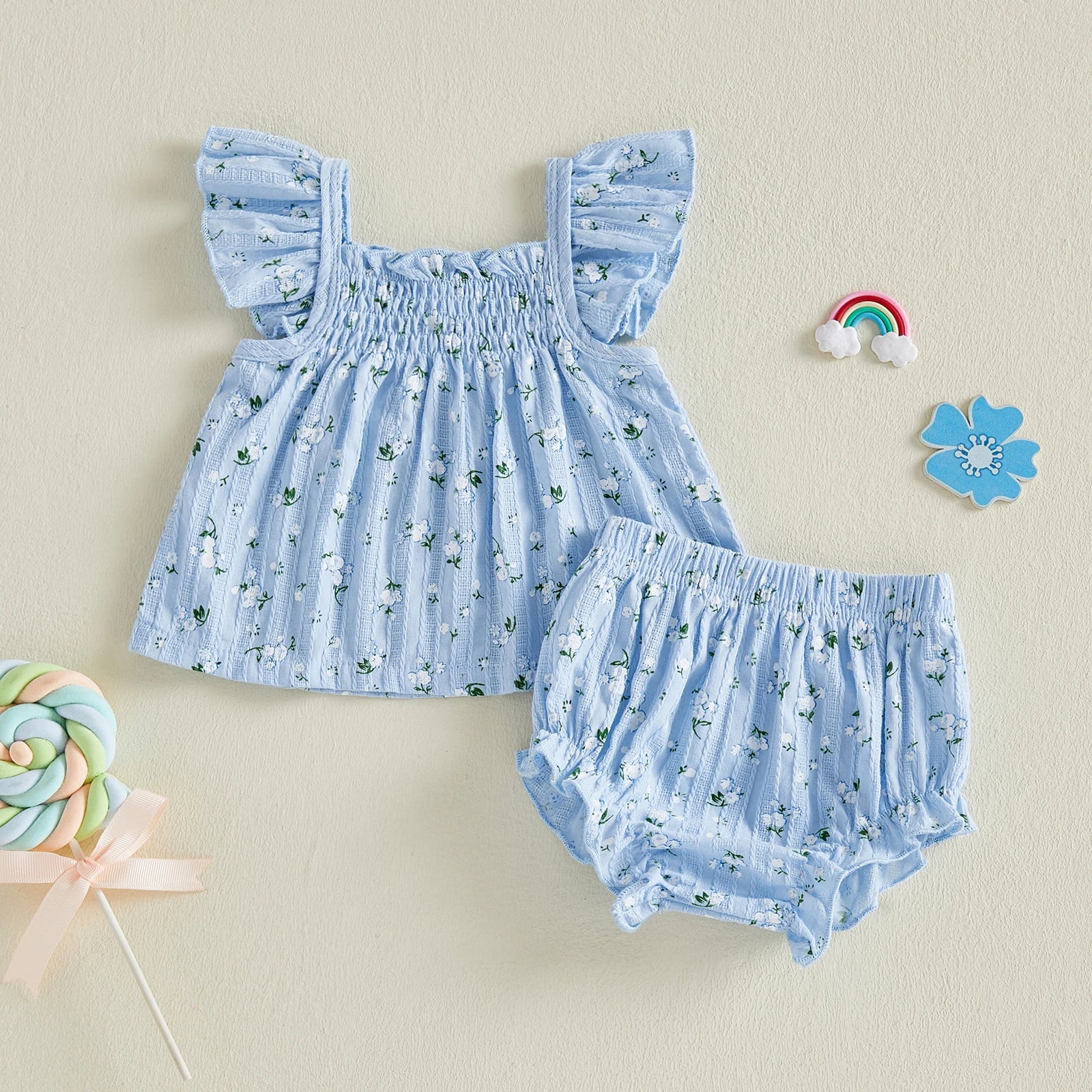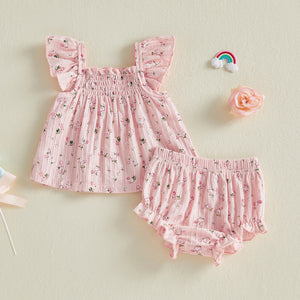 Adorable floral print babydoll bloomer set.