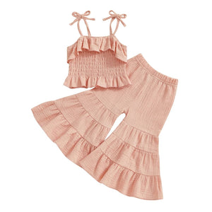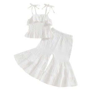 Mariah Ruched Bodice Crop + Flare Set - Sky