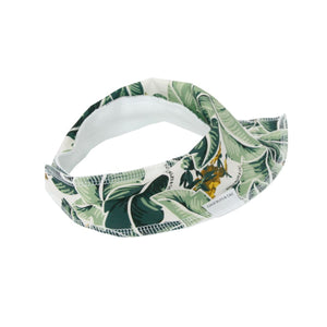 Be green in our Tropical Palm print Dribble Bib. Tonal green palm leaves on a white base with summer yellow pops of flowers.