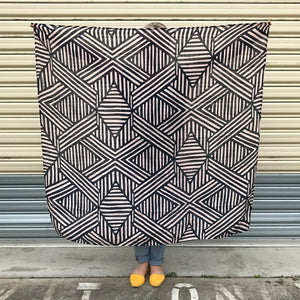 Bamboo / Cotton Muslin Swaddle. Super soft and digitally printed in our exclusive Tribal Geometric print. Our tribal geometric print is wonderfully simple and striking. In black & cream its modern, simple, geometric.