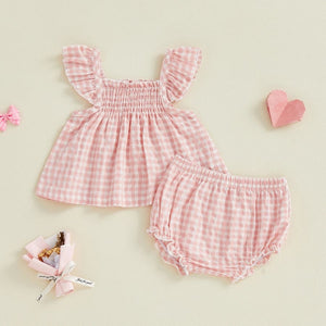 Gorgeous gingham print babydoll bloomer set.